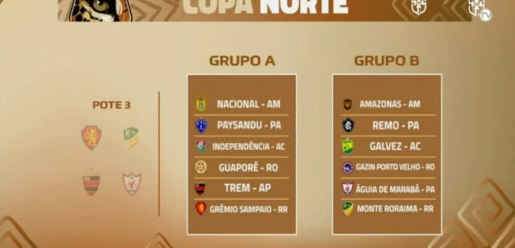 Nessa terça-feira (3), a Confederação Brasileira de Futebol (CBF) anunciou os grupos da Copa Norte de 2026 por meio de um sorteio. O torneio está voltando ao calendário do futebol brasileiro após um hiato de 24 anos. O campeonato passa a fazer parte da Copa Verde e terá 12 times, organizados em dois grupos com seis equipes cada.