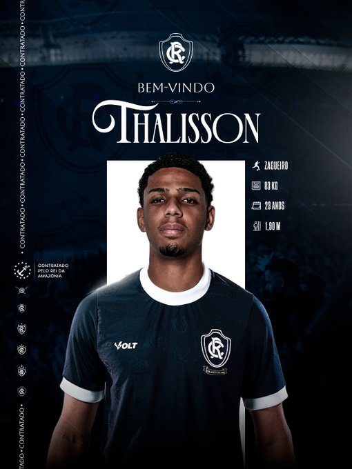 Nesta segunda-feira, dia 12, o Remo divulgou a contratação do zagueiro Thalisson, de 23 anos. Ele jogou a última Série B do Campeonato Brasileiro pelo Paysandu e chega ao time azulino emprestado pelo Coritiba.